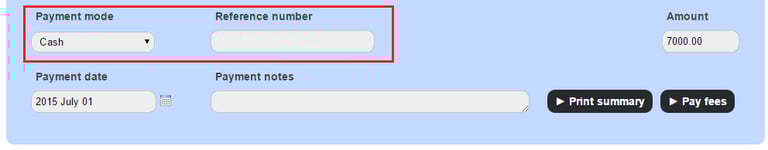 If the payment mode is Cash, you can provide a reference number.