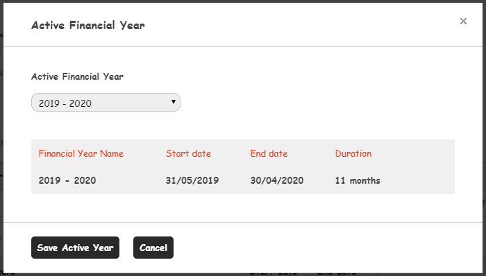 Home>Finance>Finance Settings>Manage Financial Years > Change Active Financial Year