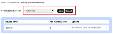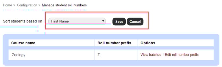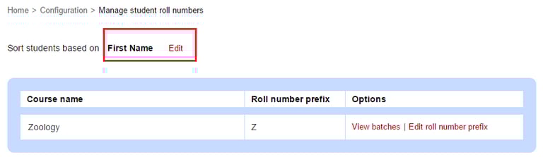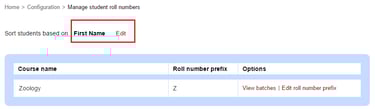 At the top of your dashboard, click the module access icon > Administration > Settings > Manage student roll numbers to open the Manage roll number page.