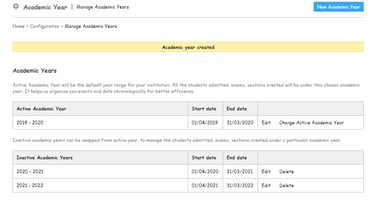 Click on Create Academic Year to save the configuration.