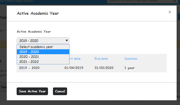 Click on Save Active Year to save the settings.