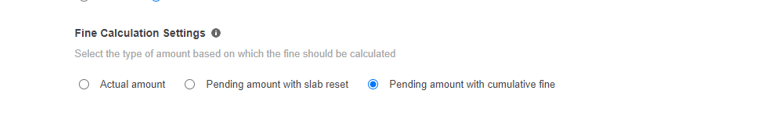 Fine will be calculated based on the pending principal amount(excluding existing calculated fine) and will be shown in a separate column/row on the payment page(cumulative fine)