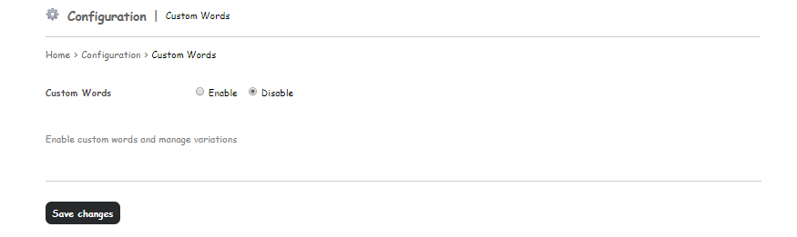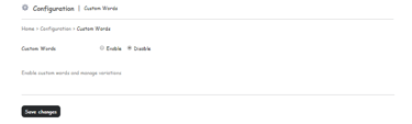 At the top of your dashboard, click the Menu> Administration > Settings > Custom Words to open the Custom words configuration page.