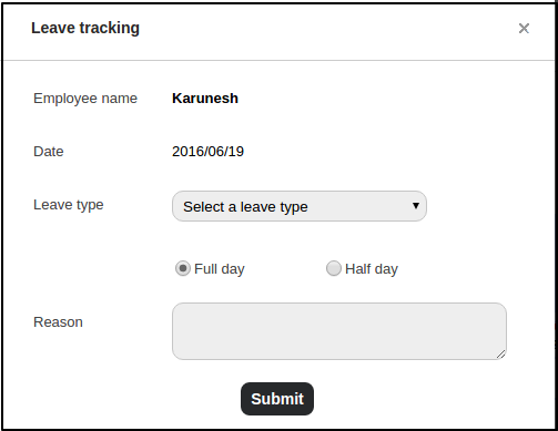 Select the Half Day checkbox if the employee was absent for only half day else select Full day.