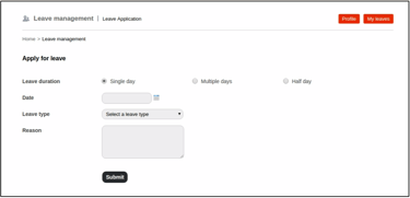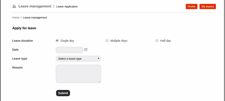 Go to your profile. In the top right, click Leaves > Apply leave to open the Leave Application page.