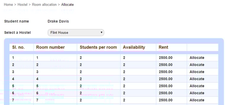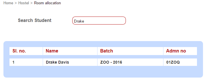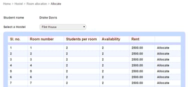 Note:Based on the gender of the student, the type of hostel will be listed.