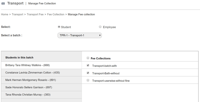 You can assign and unassign the scheduled transport fee collections for a student or employee by following the below steps,