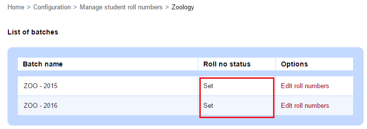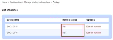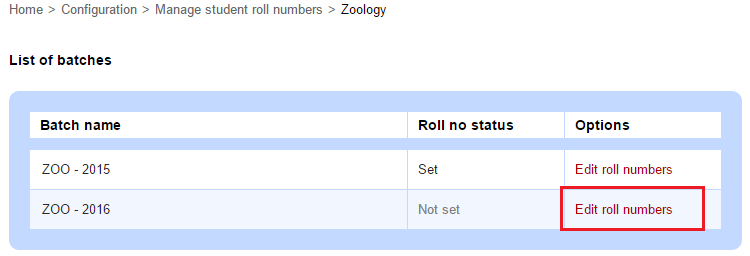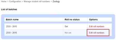 3. Click Edit roll numbers beside a batch.