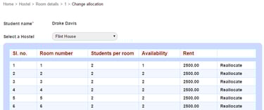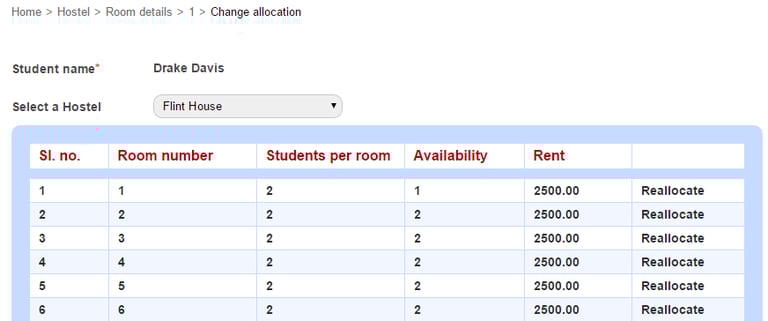 Then select the hostel to which you want to reallocate.