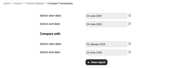 How can I compare finance transactions between two different time intervals?