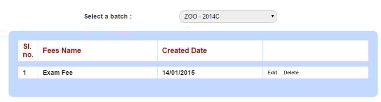 Select a batch. The list of fee categories created for the batch will be displayed as depicted in Fig 2.