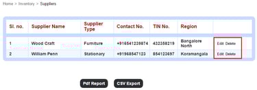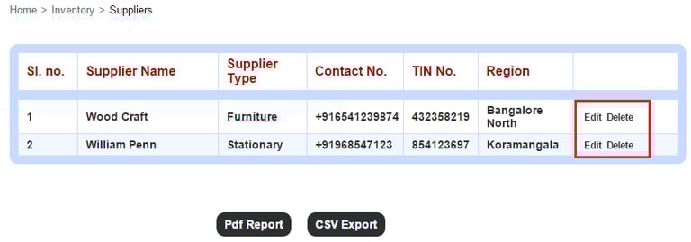 Click Edit to edit supplier details, or click Delete to delete a supplier.