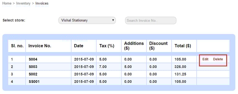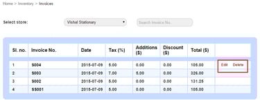 Click Edit to edit the sales invoice, or click Delete to delete the sales invoice.