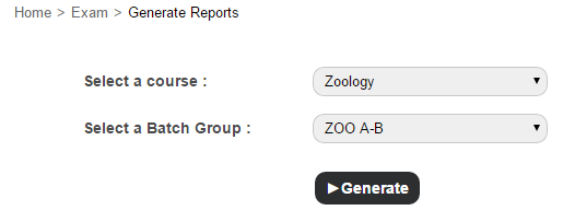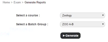 At the top of your dashboard, click the module access icon > Academics > Examination > Generate Reports to open the Generate Reports page.
