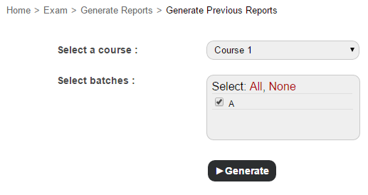 How can I generate previous batch exam report?