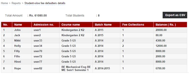 How can I generate students fees defaulters report?
