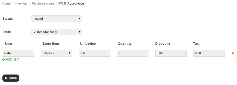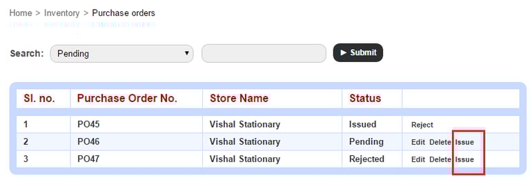 Click Issue beside the purchase order you want to approve. Verify the purchase order details.