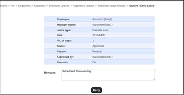 Click the Deny button to deny the leave application.