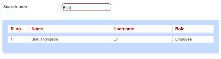 The administrator or privileged employees (Manage Users privilege is required) can search for a user from the Manage Users page.
