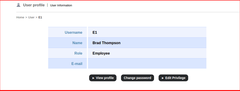 When you click the user name you will get the three option ie, to change the password, view profile and edit privileges as in the screenshot below.