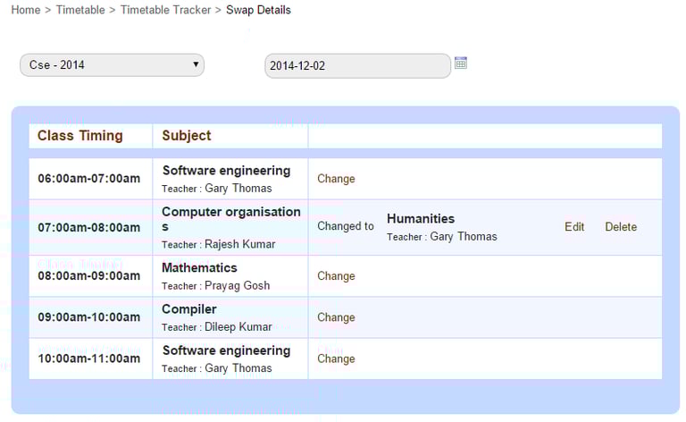 If a teacher is not able to take a class or is unavailable to attend it, you can swap a class with another class as well as another teacher, or only swap the teacher.