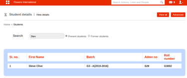 On click on the name of the student it will take to 'Student Profile' page as shown in the screenshot.