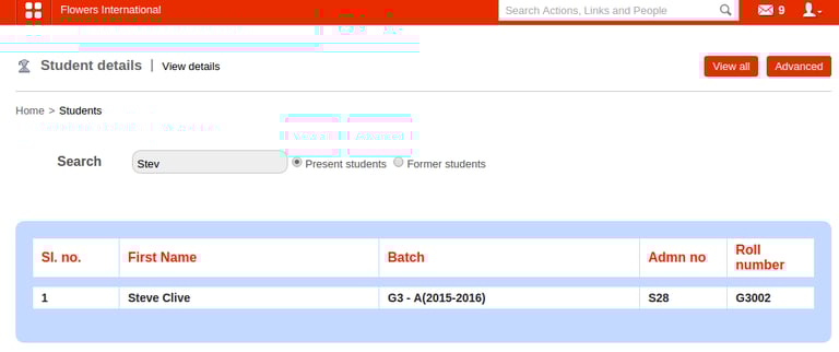At the top of your dashboard, click the module access icon > Academics > Students > Student details to open the Student details page.