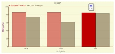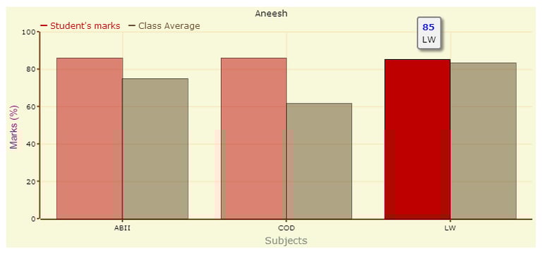 A graphical representation of a student’s performance in comparison to the class average is displayed at the bottom of the report.