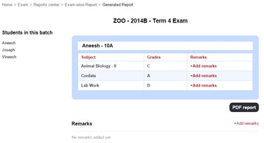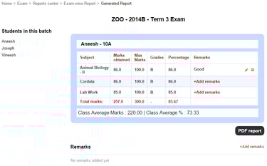 If you have selected Marks and Grades as the exam type, the report would look like this.