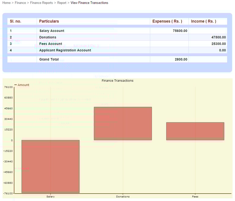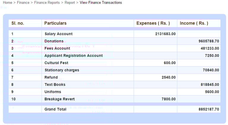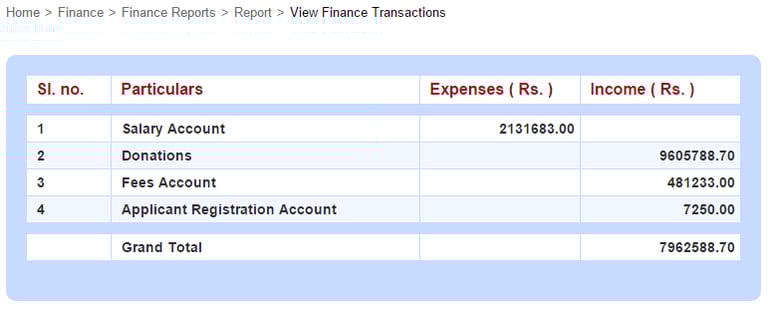 At the top of your dashboard, click the module access icon > Administration > Finance > Finance Reports > Transaction Report.