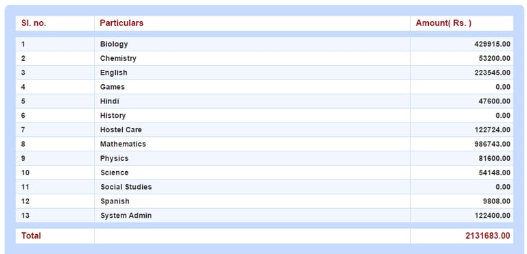For example, click on the Salary Account category and view the overall salary amount paid to each department for the specified period.