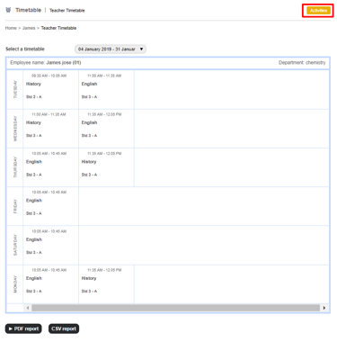 6. Click the CSV report button to print the timetable as a CSV file.