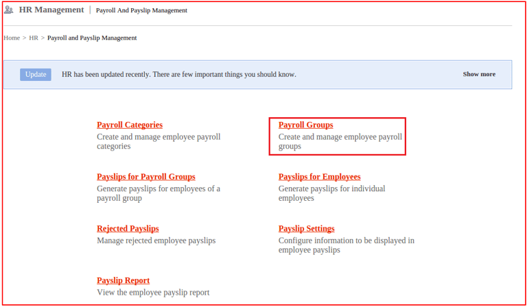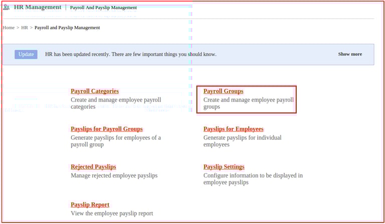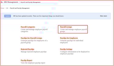 2. Click on Payroll Groups option (as shown in Fig 2) to open the payroll groups page.