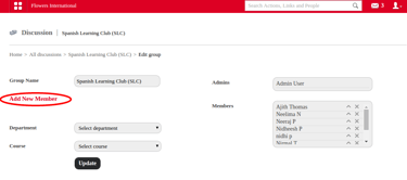 Then we will get a option called Add new member to add members.Select department or course to add users. Refer Figure given below