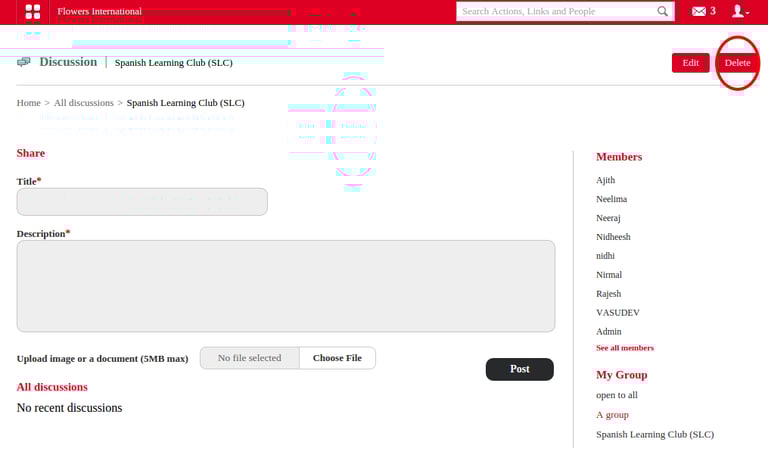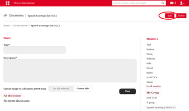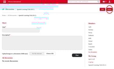 Discussion group can be edited, deleted or altered by Admin or privileged employee within the group.