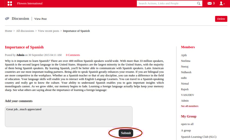 Then it shows the post and will get a box that will help us to submit our comments. Refer the figure shown below.
