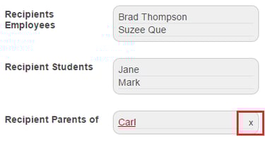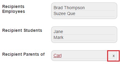 To remove a recipient from the list, click ‘x’ beside the recipient’s name.