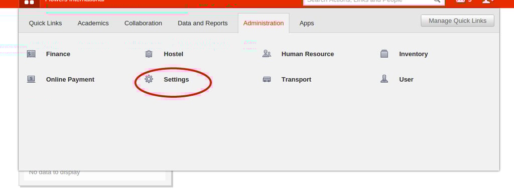 Sharakshara App comprises various modules and add-ons designed to efficiently manage all administrative, academic, and learning-related activities of an institution. The Menu available at the top of the dashboard provides easy access to all core modules and enabled features that your institution can use within the Sharakshara App.