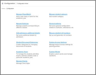 It displays the Configuration Home page within Fedena depicted in Fig 2.