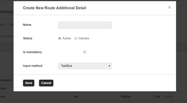 To enter Additional Route details, go to module access icon > Administration > Transport > Settings. Click on the Route Additional Details and click on Add Details button to add name of the additional field.