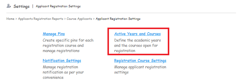 To open the Admission for any batch for a new Academic Session, the Admin or the privileged user has to configure the Active Year and courses option in the Applicant Registration Module settings.