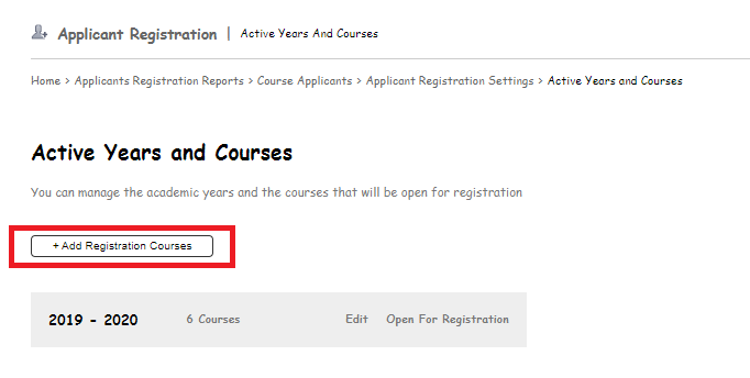 Step 5: Click on Add registration courses button.
