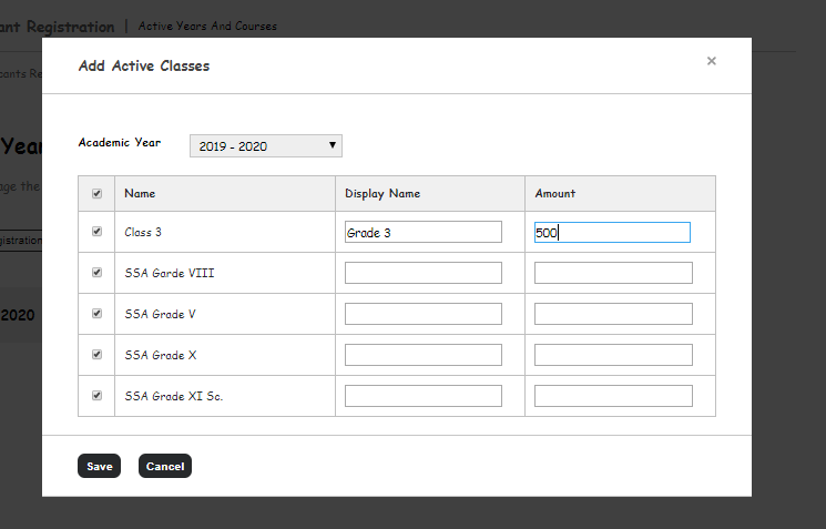 Step 7: Select the classes for which you want to open the admission by clicking on their respective checkbox.