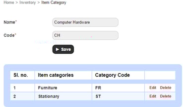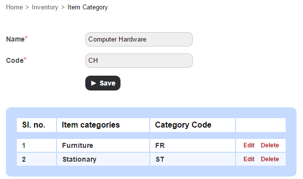 In the Code field, enter the item category code. The code for each item category must be unique.
