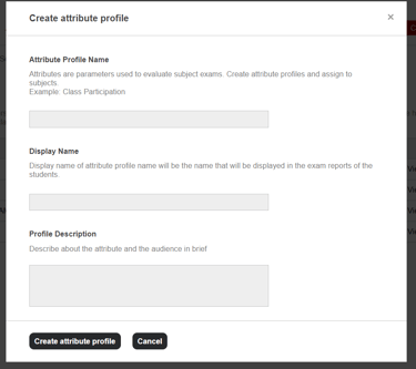 Attributes are the parameters/Skills, based on which the subject mark is calculated. For example, worksheets, activities done in class, home works submitted etc. are attributes based on which the total mark of a subject might be calculated.