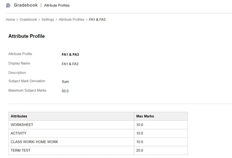 Attribute profile needs to be created only if the school uses such bifurcation while calculating the total marks. In case such sub divisions are not present in your school you can ignore the attribute profile creation.