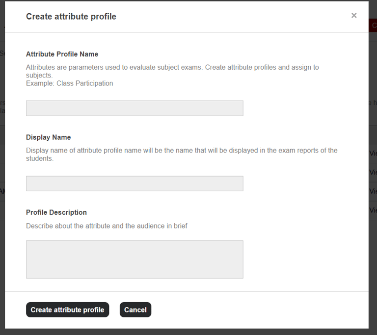i) Menu >> Academics >> Gradebook >> Settings >> Attribute Profiles - > Create Attribute Profile