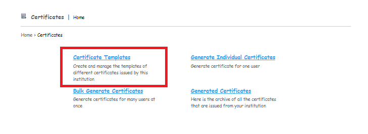 Step 2: Click on Certificate template option to create the template.