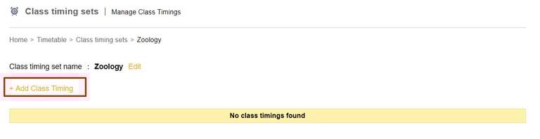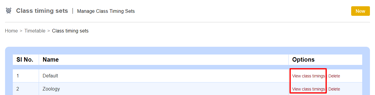 A class timing set defines the number of periods/Class and the duration of each period/Class in a working day. You can create as many class timing sets.