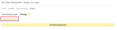 At the top of your dashboard, click the module access icon > Academics > Timetable > Manage class timing set to open the Manage class timing sets page.